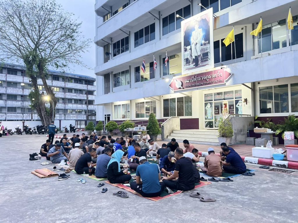 ร่วมกิจกรรมละศีลอด รอมฎอนสัมพันธ์ ภายในสถานีตำรวจ เพื่อสร้างสัมพันธ์อันดีให้กับข้าราชการตำรวจ สภ.แว้ง และร่วมละหมาดมัฆริบ ปฏิบัติศาสนกิจ ในเดือนรอมฎอน ฮ.ศ.1446 ณ ที่ทำการ สภ.แว้ง