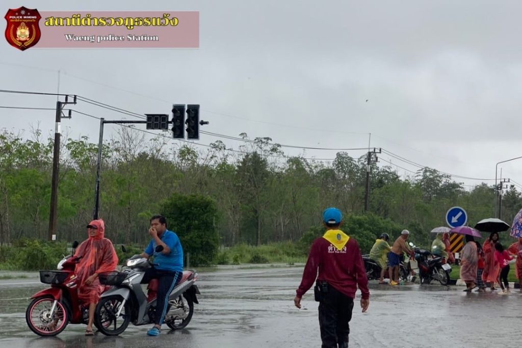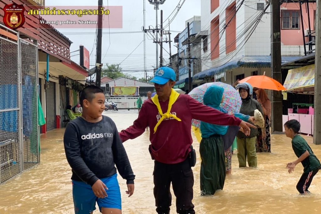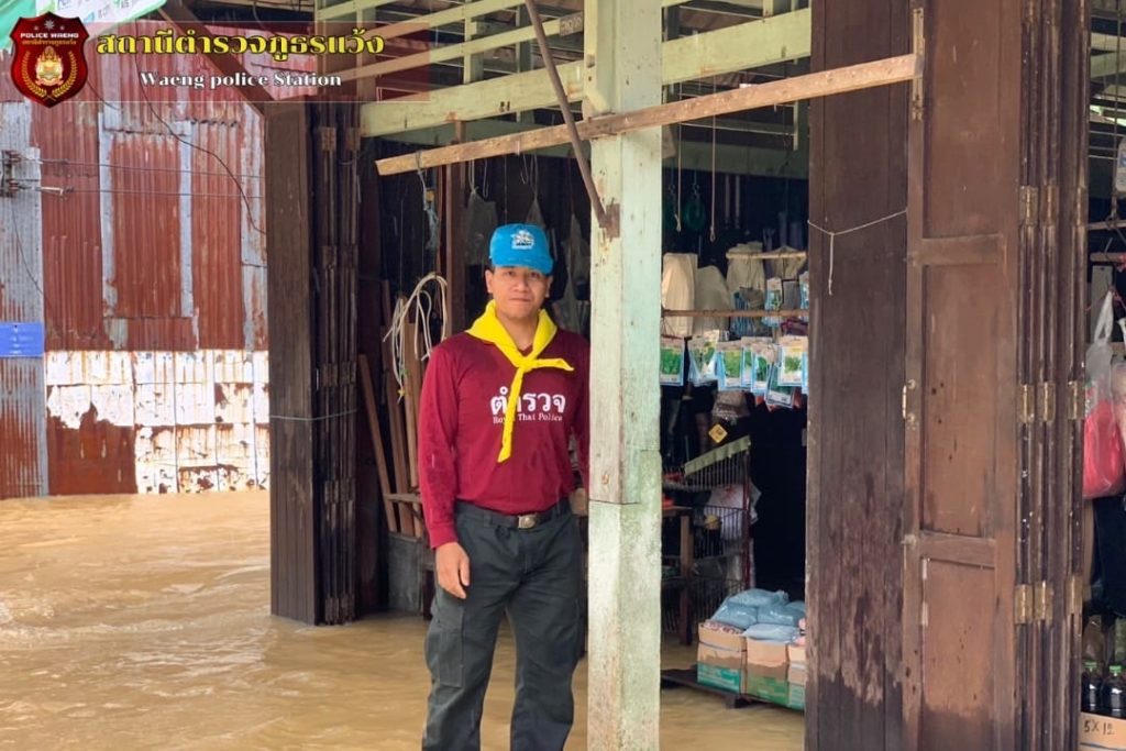 ตำรวจจิตอาสาภัยพิบัติ สภ.แว้ง ออกพื้นที่ พบปะ ประชาชน ให้ความช่วยเหลือผู้ประสบอุทกภัย ช่วยเคลื่อนย้ายสิ่งของขึ้นที่สูง และแจ้งเตือน เฝ้าระวังน้ำท่วมฉับพลัน น้ำป่าไหลหลาก เนื่องจากฝนตกเป็นเวลาต่อเนื่อง และประชาสัมพันธ์ห้ามลงเล่นน้ำในช่วงน้ำท่วม เพื่อป้องกันอันตรายจากอุบัติภัยต่างๆ ณ พื้นที่รับผิดชอบ สภ.แว้ง อ.แว้ง จว.นราธิวาส ![]()