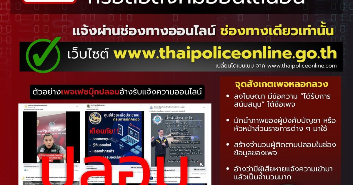 เมื่อวันที่ 31 ธันวาคม 2566 พล.ต.ต.ศิริวัฒน์ ดีพอ รองโฆษกสำนักงานตำรวจแห่งชาติ กล่าวว่า พล.ต.อ.ต่อศักดิ์ สุขวิมล ผบ.ตร. ได้มีความห่วงใยพี่น้องประชาชนที่อาจได้รับความเสียหายจากอาชญากรรมรูปแบบต่าง ๆ ซึ่งในปัจจุบันได้มีกลุ่มมิจฉาชีพที่อาศัยการสร้างเพจเฟซบุ๊กปลอมพร้อมมีการลงโฆษณา อ้างเป็น สำนักงานตำรวจแห่งชาติ หรือหน่วยงานราชการอื่น ระบุข้อความว่าสามารถแจ้งความออนไลน์ได้ที่บัญชีสื่อสังคมออนไลน์ดังกล่าว ซึ่งไม่เป็นความจริง และมีการหลอกลวงเอาทรัพย์สินโดยการอ้างว่าเป็นค่าดำเนินการ ค่าเร่งรัดคดีเป็นกรณีพิเศษ หรือเป็นวิธีการที่จะทำให้ได้เงินคืนจากคนร้าย โดยหลอกให้เข้าลงทุนในเว็บไซต์หลอกลงทุนหรือหลอกให้เข้าเล่นเว็บไซต์พนันออนไลน์ ทำให้มีพี่น้องประชาชนหลงเชื่อได้รับความเสียหายเป็นจำนวนมาก