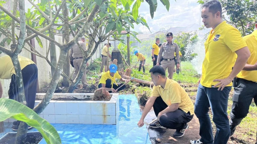 ว่าที่ พ.ต.อ.เฮรามาน เจ๊ะดี ผกก.สภ.แว้ง พร้อมด้วยข้าราชการตำรวจจิตอาสา สภ.แว้งร่วมกันพัฒนาปรับปรุงภูมิทัศน์ทำความสะอาดบริเวณที่ตั้งหน่วย เพื่อความเป็นระเบียบเรียบร้อย ไว้พร้อมรองรับประชาชน และผู้มาติดต่อราชการ