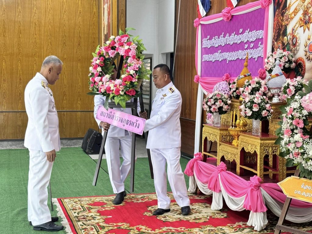 วันที่ 23 ตุลาคม 2567 เวลา 08.00 น. ภายใต้อำนวยการของ พ.ต.อ.เฮรามาน เจ๊ะดี ผกก.สภ.แว้ง มอบหมายให้ พ.ต.ท.สุวิท แก้วประดับ รอง ผกก.ป.สภ.แว้ง, ร.ต.อ.สาธิต หวังสันติสุข รอง สว.(สอบสวน) สภ.แว้ง ร.ต.ท.สมศักดิ์ ขันแก้ว รอง สว.(ป.)สภ.แว้ง ร่วมกับ หัวหน้าส่วนราชการ และส่วนเกี่ยวข้องในพื้นที่ ร่วมพิธีวางพวงมาลาเพื่อถวายเป็นราชสักการะน้อมรำลึก เนื่องในวันคล้ายวันสวรรคต พระบาทสมเด็จพระจุลจอมเกล้าเจ้าอยู่หัว รัชกาลที่ 5 ณ หอประชุมอำเภอแว้ง จว.นราธิวาส โดยมี นายประยุทธ ทองพุ่ม นายอำเภอแว้ง เป็นประธานในพิธี ![]()