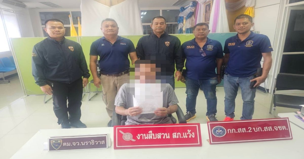 พ.ต.ท.ประยูร สุวรรณโณ สว.สส.สภ.แว้ง พร้อมชุดสืบสวน สภ.แว้ง, ชป.สายตรวจรถยนต์20, ชป.หมายจับและภัยแทรกซ้อน กก.สส.2 บก.สส.จชต., ตม.จว.นราธิวาส ได้ร่วมรับมอบตัว นายไก่ ฯ (นามสมมุติ) อายุ 28 ปี โดยกล่าวหาว่า “เป็นบุคคลตามหมายจับของศาลจังหวัดนราธิวาส กระทำความผิดฐาน”มีอาวุธปืนไม่มีทะเบียนและเครื่องกระสุนปืนไว้ในครอบครองโดยไม่ได้รับอนุญาต, มีปืนอาวุธปืนของผู้อื่นไว้ในครอบครองโดยผิดกฎหมายและมียาเสพติดให้โทษประเภท 1 (เมทแอมเฟตามีน) ไว้ในครอบครองเพื่อจำหน่ายโดยผิดกฎหมาย”