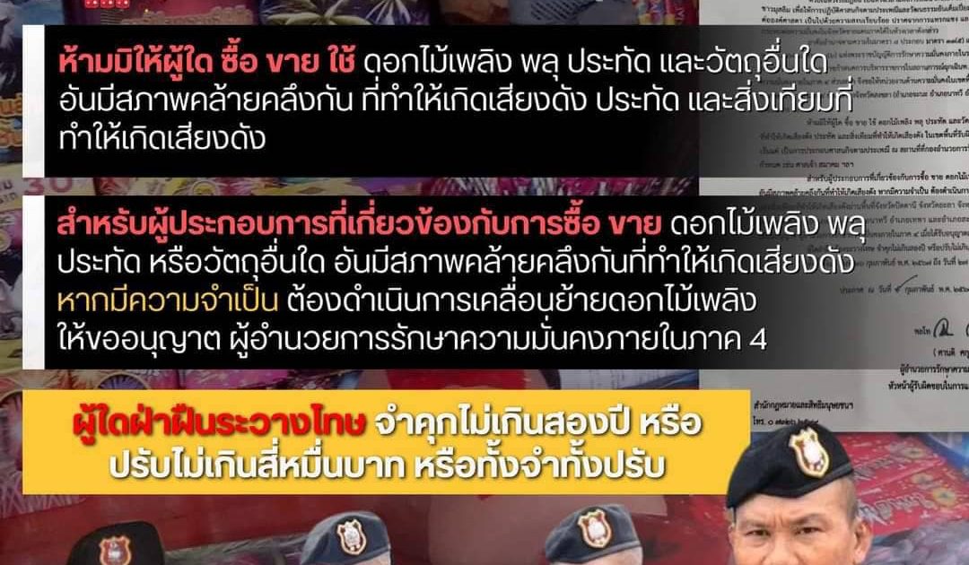 สำหรับผู้ประกอบการที่เกี่ยวข้องกับการซื้อ ขาย ดอกไม้เพลิง ประทัด และสิ่งเทียมที่ทำให้เกิดเสียงดัง หากมีความจำเป็น ต้องดำเนินการเคลื่อนย้ายดอกไม้เพลิง ประทัด และสิ่งเทียมที่ทำให้เกิดเสียงดัง ผ่านพื้นที่ในห้วงเดือนรอมฎอน ให้ขออนุญาต ผู้อำนวยการรักษาความมั่นคงภายในภาค 4 เมื่อได้รับอนุญาตแล้ว ให้สามารถทำการเคลื่อนย้ายได้