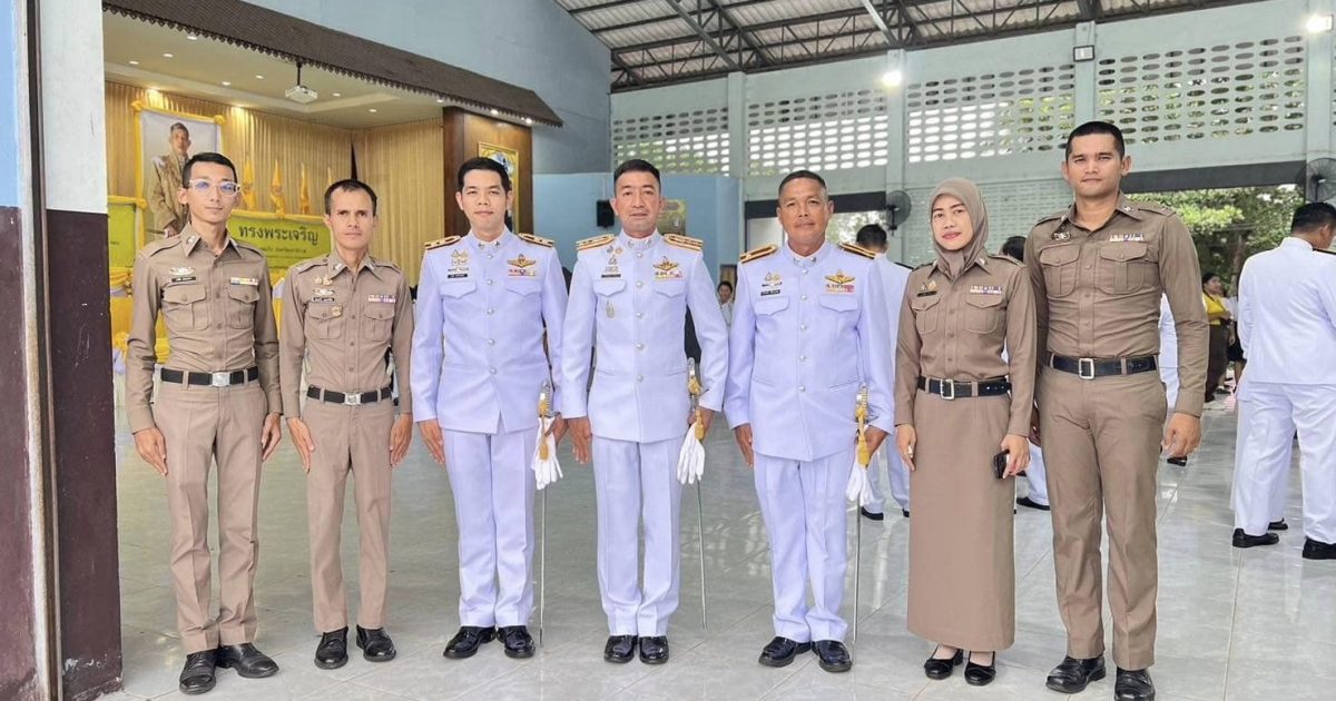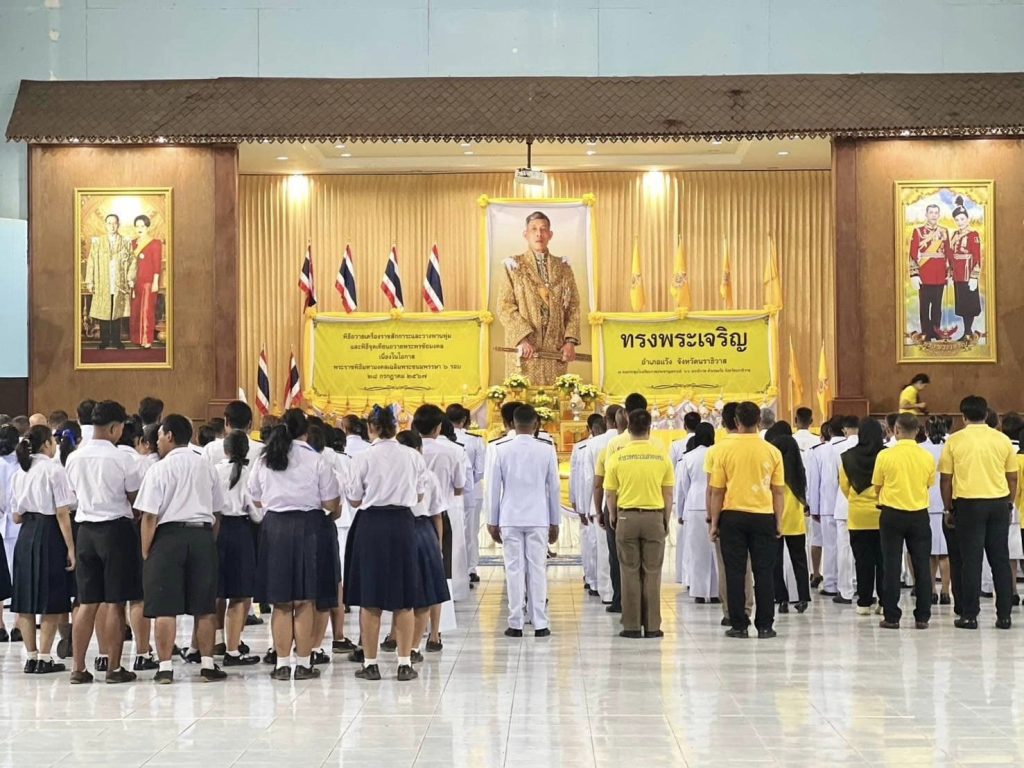 ผกก. สภ.แว้ง พร้อมข้าราชการตำรวจ ร่วมพิธีถวายเครื่องราชสักการะ วางพานพุ่มและพิธีถวายพระพรชัยมงคล