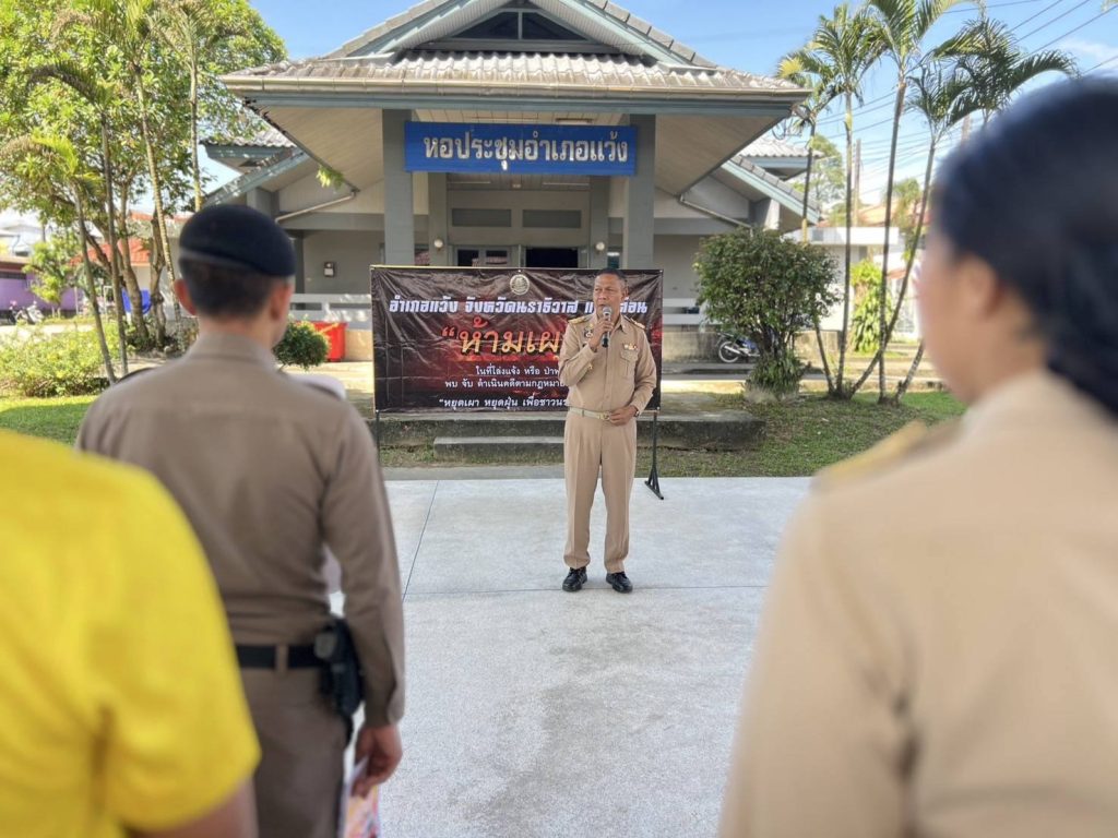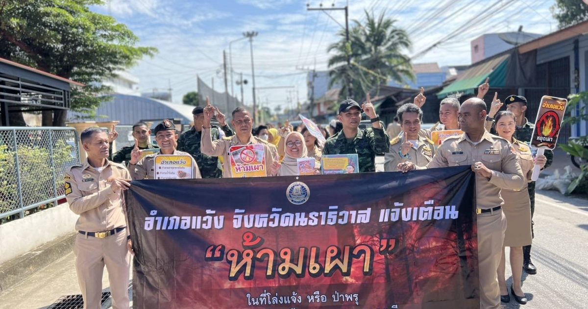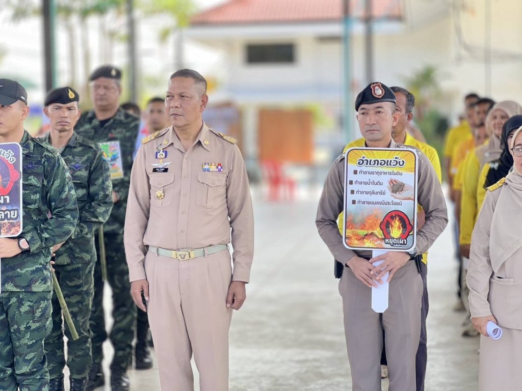 พ.ต.อ.เฮรามาน เจ๊ะดี ผกก.สภ.แว้ง พร้อมด้วย หน.ส่วนราชการ ผู้นำท้องถิ่นและส่วนที่เกี่ยวข้องในพื้นที่ ร่วมพิธีเปิดกิจกรรม Kick off “ห้ามเผา” ในที่โล่งแจ้ง หรือ ป่าพรุ พบ จับ ดำเนินคดีตามกฎหมายทุกกรณี “หยุดเผา หยุดฝุ่น เพื่อชาวนราธิวาส” เพื่อป้องกันและแก้ไขปัญหาไฟป่า หมอกควัน และฝุ่นละอองขนาดเล็ก PM2.5 ณ ที่ว่าการอำเภอแว้ง จังหวัดนราธิวาส