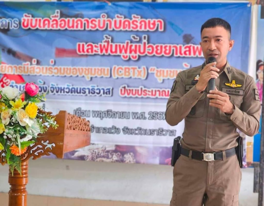 พ.ต.อ.เฮรามาน เจ๊ะดี ผกก.สภ.แว้ง พร้อมด้วยชุด ตชส.สภ.แว้ง, ชุด สืบสวน สภ.แว้ง และส่วนที่เกี่ยวข้อง ร่วมพิธีเปิด ” โครงการขับเคลื่อนการบำบัดรักษาและฟื้นฟูผู้ป่วยยาเสพติดโดยการมีส่วนร่วมของชุมชน CBTx (ชุมชนล้อมรักษ์) อำเภอแว้ง จังหวัดนราธิวาส ปีงบประมาณ 2567 ณ ศาลาอเนกประสงค์ บ้านเจ๊ะเหม ต.แว้ง อ.แว้ง จ.นราธิวาส