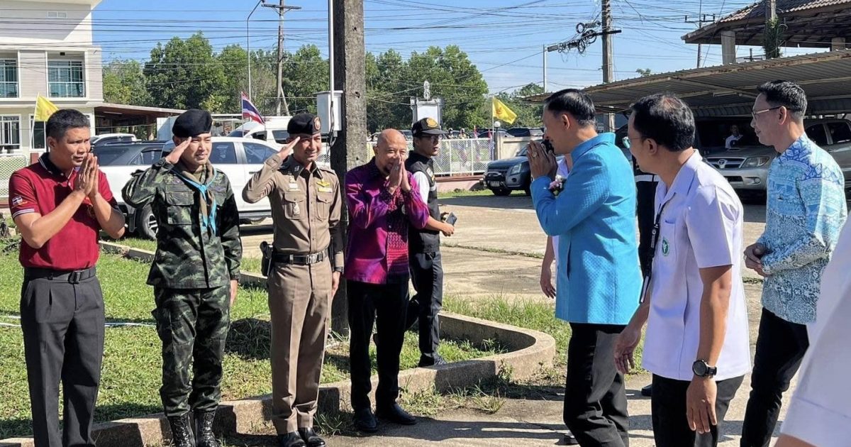 ว่าที่ พ.ต.อ.เฮรามาน เจ๊ะดี ผกก.สภ.แว้ง พร้อมด้วย หน.ส่วนราชการ ผู้นำท้องถิ่น และส่วนที่เกี่ยวข้องในพื้นที่ ให้การต้อนรับ ว่าที่ร้อยตรีตระกูล โทธรรม ผู้ว่าราชการจังหวัดนราธิวาส เดินทางมาร่วมเป็นเกียรติในพิธีเปิดกิจกรรม Kick off มินิธัญญารักษ์ ณ ลานเอนกประสงค์ โรงพยาบาลแว้ง อ.แว้ง จว.นราธิวาส