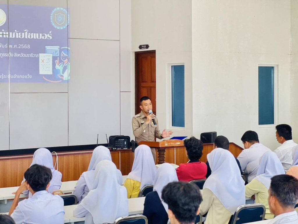 เป็นประธานพิธีเปิด “โครงการรู้เท่าทันภัยไซเบอร์” เพื่อให้เข้าใจและเห็นความสำคัญของภัยไซเบอร์ ในการป้องกันและรับมือกับสถานการณ์และสร้างความตระหนักรู้ในการใช้เทคโนโลยีที่ปลอดภัย ประจำปีงบประมาณ พ.ศ.2568 ณ ห้องประชุมชั้น 4 สภ.แว้ง