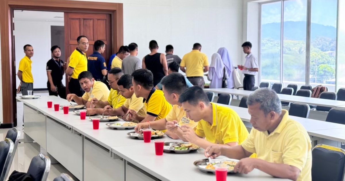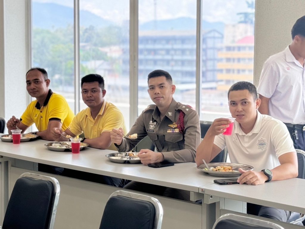 ร่วมรับประทานอาหาร ตามโครงการสวัสดิการอาหารกลางวันของข้าราชการตำรวจในสังกัด เพื่อสร้างความสามัคคี และเพื่อเป็นขวัญกำลังใจให้กับกำลังพลในการปฏิบัติหน้าที่ ณ ห้องประชุม ชั้น 4 สภ.แว้ง