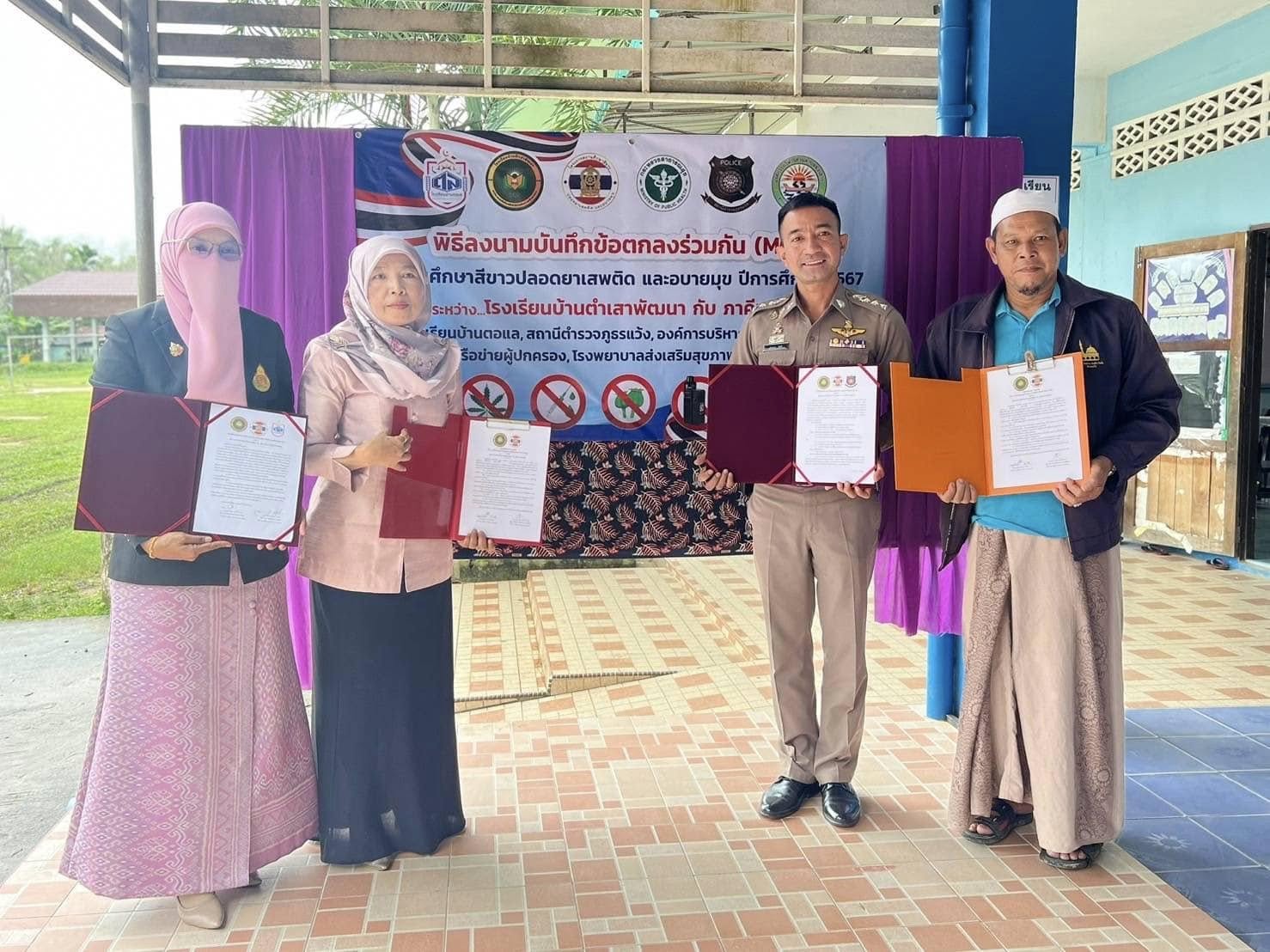 ร่วมลงนาม MOU บันทึกข้อตกลงโครงการสถานศึกษาสีขาว ปลอดยาเสพติดและอบายมุข กับโรงเรียนในพื้นที่รับผิดชอบ